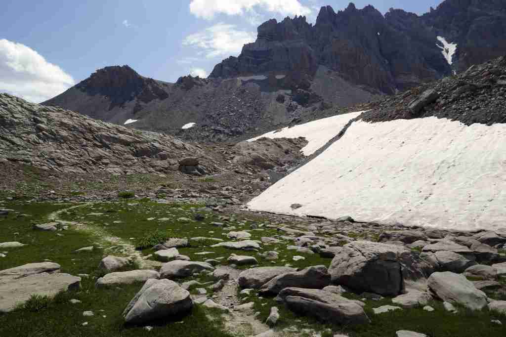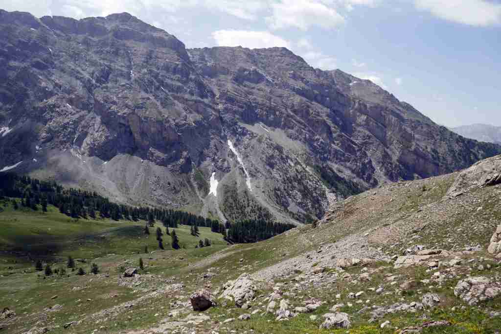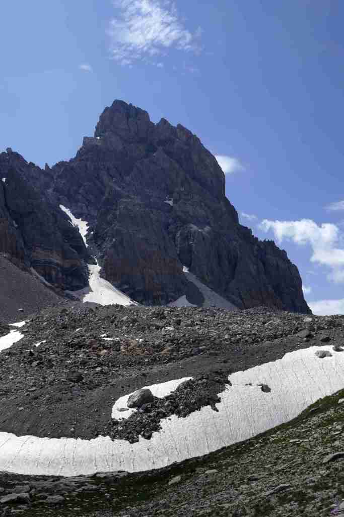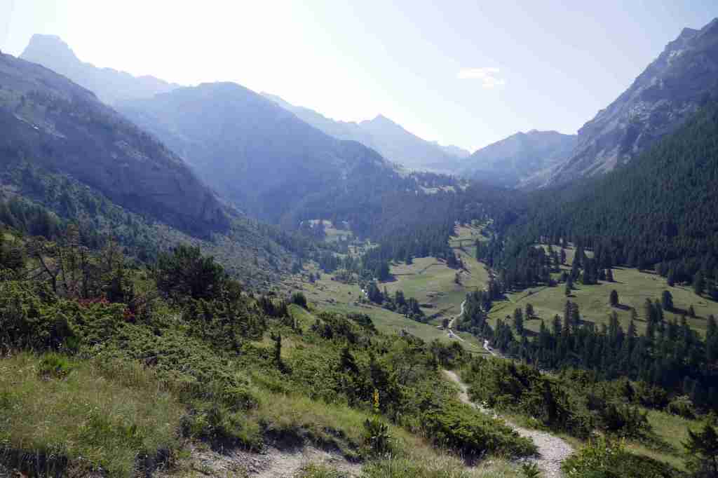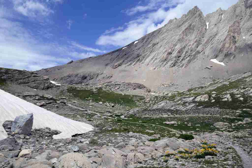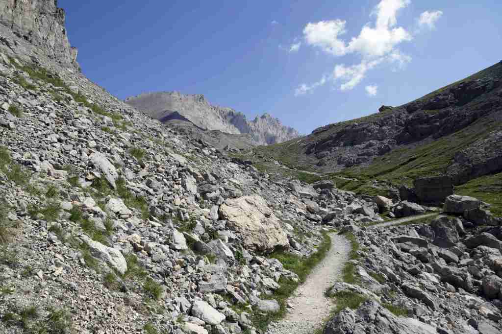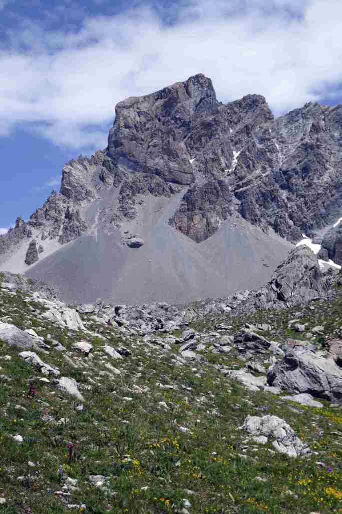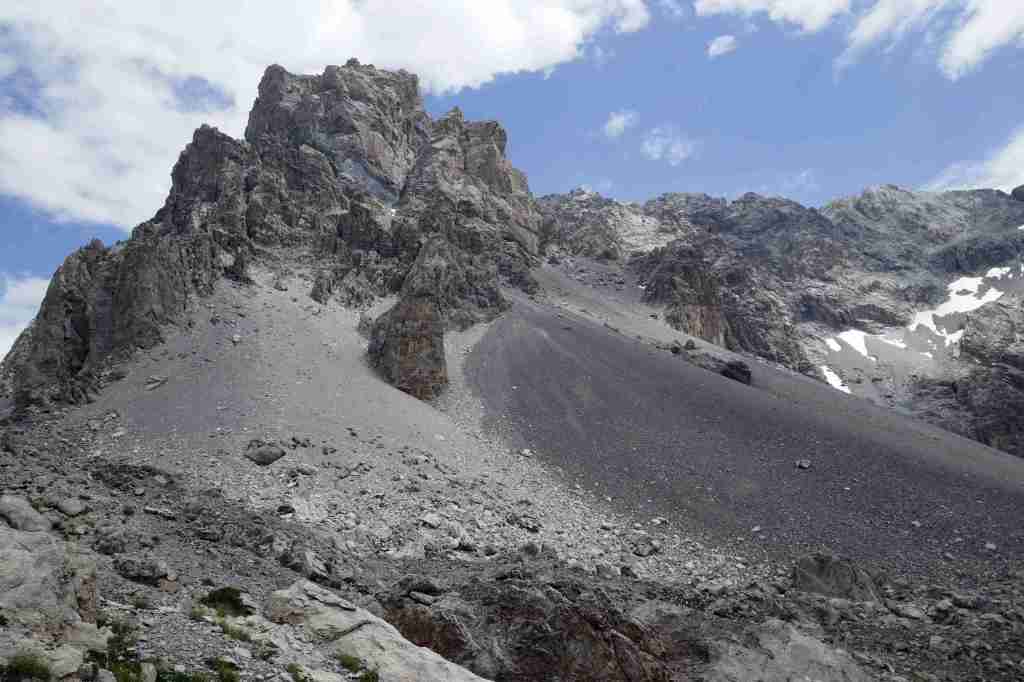 Départ donc de Fouillouse et ses façades ponctuées de cadrans solaires, témoignant de l’ensoleillement important du secteur. Le chemin s’élève rapidement sur un versant adret, avec des vues s’ouvrant sur la Mortice et même les pics de la Font Sancte, plein nord. Ensuite, on bifurque vers l’est en direction du refuge de Chambeyron. Le sentier domine alors le vallon du riou de Fouillouse, au sud. Le refuge est positionné sur les hauteurs du lac Premier, au pied du massif Brec de Chambeyron. L’objectif suivant est le lac Long, situé 1,5 km avant le fameux lac des 9 couleurs, blotti dans un cirque créé par plusieurs sommets dépassant les 3000 mètres, dont l’aiguille de Chambeyron, toit des Alpes-de-Haute-Provence. Grandiose. Le retour se fait par le même chemin jusqu’au lac Long, où l’on part plein sud en direction du Pas de la Couletta. Après un secteur très minéral, on arrive dans le verdoyant vallon des Aoupets. 400 mètres après la cabane du même nom, on tourne vers le nord-ouest et l’on rejoint le curieux fort de Plate Lombarde (ouvrage de la ligne Maginot), depuis lequel on regagne aisément le hameau de Fouillouse.