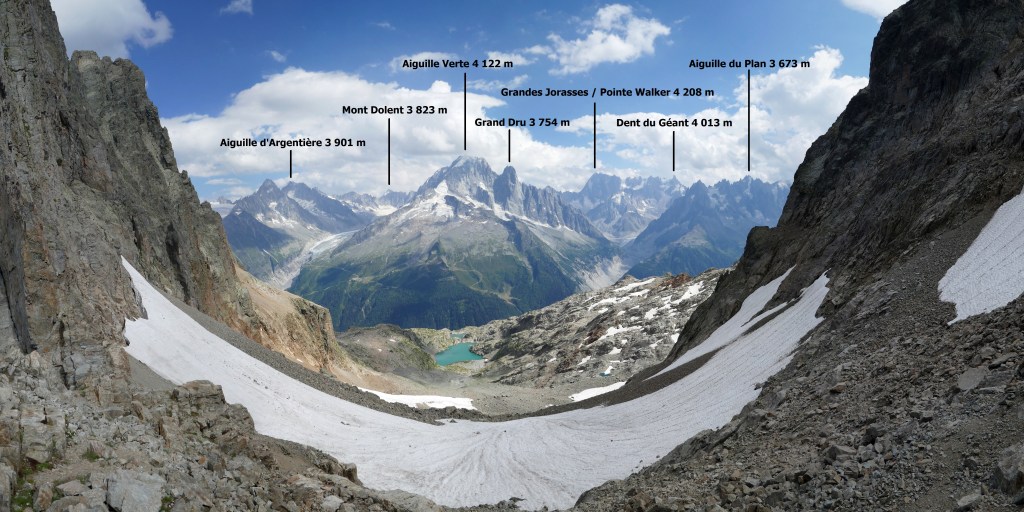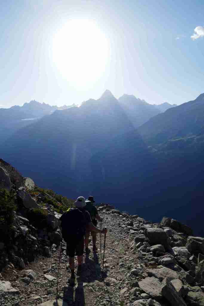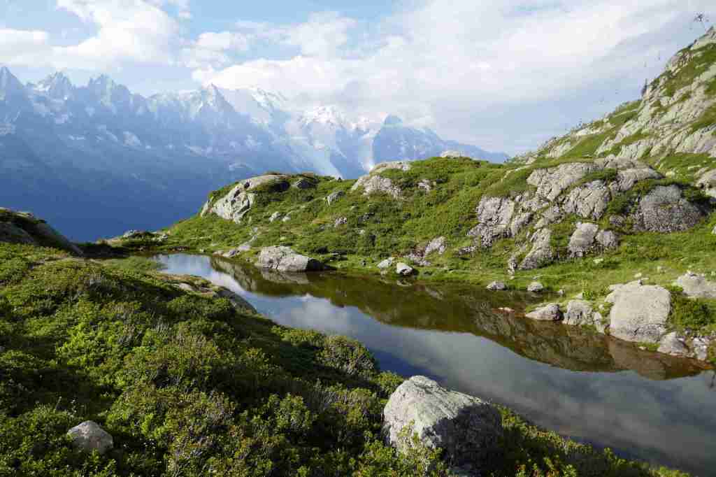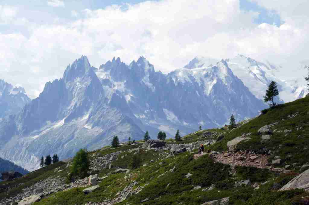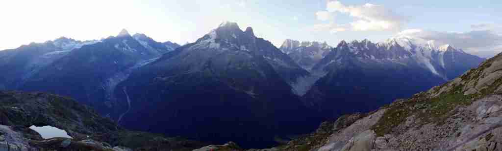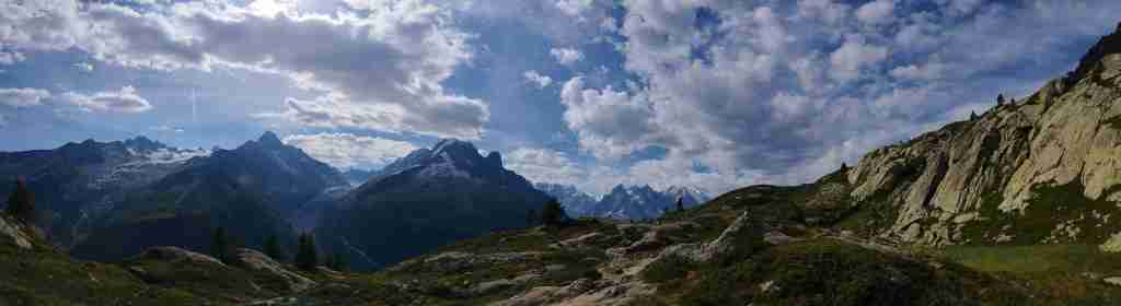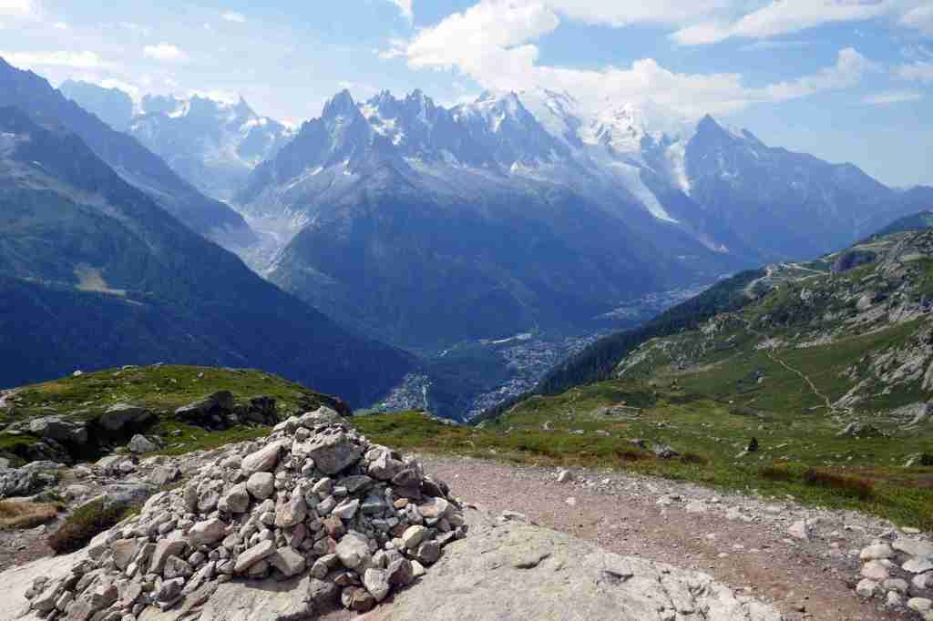 L’essentiel du dénivelé positif de l’étape se fait juste après le col, jusqu’à atteindre le grand balcon sud et son fabuleux panorama : glacier du Tour, glacier d’Argentière, Mer de Glace, mais aussi sommets mythiques tels que les Grandes Jorasses, la Dent du Géant, le Mont Maudit et bien sûr le Mont Blanc. La fin de l’étape passe à proximité des jolis lacs des Chéserys. Un dernier raidillon et l’on arrive au refuge du Lac Blanc.Indice IBP : 80 (niveau 4 = assez difficile)