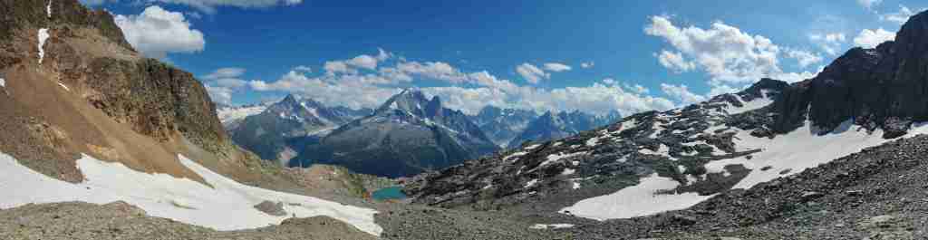 Descriptif Etape 1 bonus Col du Belvédère : En bonus, un aller-retour relativement rapide au col du Belvédère permet de s’approcher au plus près des Aiguilles Rouges et surtout de jouir d’une vue extraordinaire sur le massif du Mont Blanc au sud, et sur la réserve naturelle de Sixt-Passy au nord, dominée par le Mont Buet. Les étagnes sont nombreuses dans ce décor minéral, tout comme les névés que l’on peut s’amuser à redescendre sur les fesses.