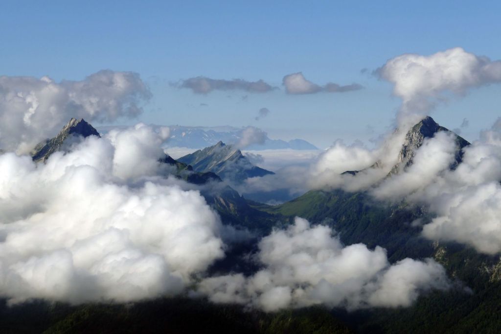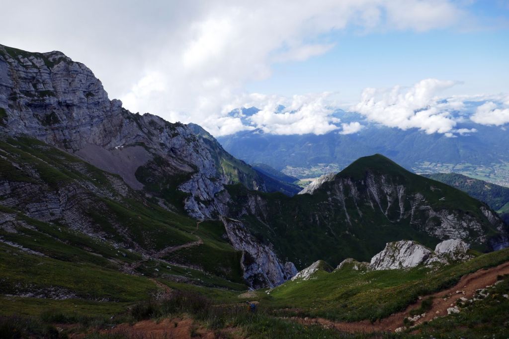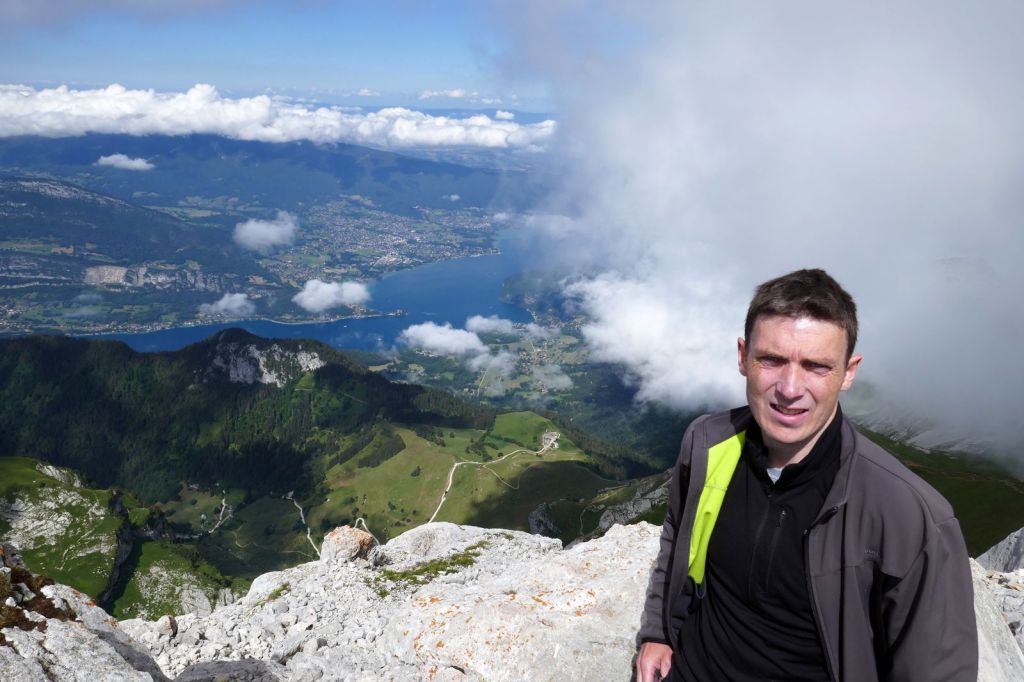 On commence par rejoindre, en sous-bois, le très fréquenté parking des Prés Ronds, depuis lequel de nombreux marcheurs entreprennent l’ascension en aller-retour. Ensuite, les choses sérieuses commencent, le dénivelé s’accentuant fortement. Plus on monte, plus les panoramas sur le lac d’Annecy, la très photogénique Pierre Châtelard et les massifs environnants deviennent grandioses. Au sommet, après avoir franchi quelques passages délicats (câbles, barres, chaînes) et la fameuse échelle qui permet d’accéder au « fauteuil », c’est l’apothéose, avec une vue s’ouvrant vers l’est sur le massif du Mont Blanc (par beau temps, ce qui n’était pas le cas quand j’y suis allé). A noter que le parcours offre de nombreuses possibilités de voir bouquetins et étagnes.Massif : Bornes