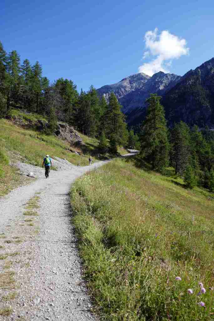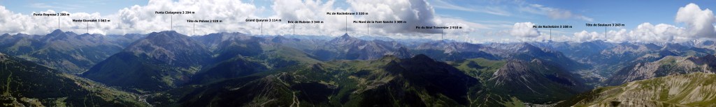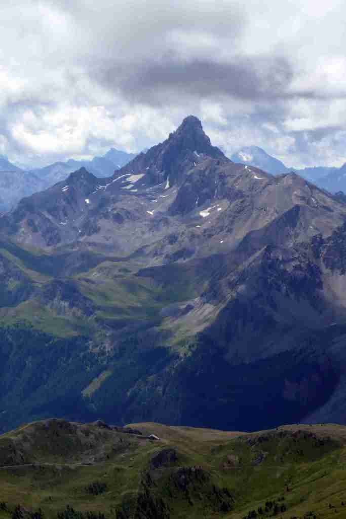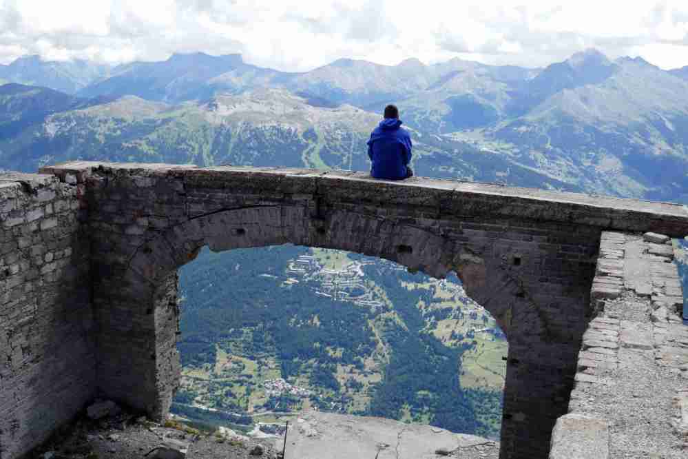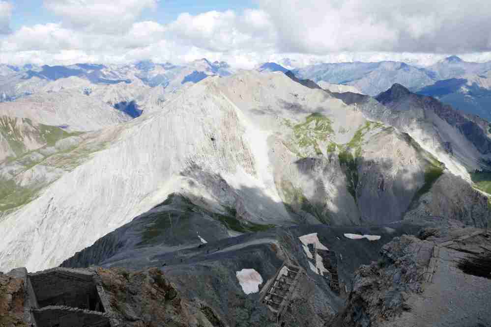 Une fois arrivé au col, il reste un peu moins de 500 m de dénivelé et il s’agit de prendre la direction sud-est et de monter le (confortable) sentier muletier et ses nombreux lacets. Et au sommet, une récompense historique : le fort, dont il reste 8 tourelles qui supportaient 8 canons, était surnommé le « Fort des nuages » à l’époque car le plus haut du monde. Dominant tous les alentours, il fut conçu par l’armée italienne pour bombarder Briançon. Mais il n’aura pas eu le temps de servir pendant la seconde guerre mondiale car dès le 21 juin 1940, l’artillerie française le met hors d’usage. Devenu français en 1947, il résiste au temps et offre une large vue sur le Briançonnais, le Queyras, les Ecrins, le Piémont… Plusieurs sommets emblématiques sont visibles : la Barre des Ecrins, le Mont Thabor, le Pic de Rochebrune entre autres.