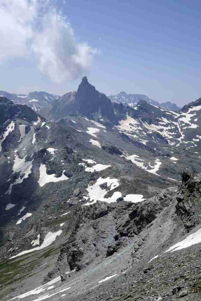 Descriptif : Un « 3000 » relativement facile au départ du refuge Agnel. Lors du premier kilomètre, le très esthétique Pain de Sucre nous fait face. Arrivé au col de Chamoussière, la vue s’ouvre sur la vallée de l’Aigue Blanche. Puis on bifurque vers le sud-est pour atteindre en moins d’une demi-heure le sommet frontalier du Pic de Caramantran (Il Pelvo en italien), qui offre un beau panorama sur la très acérée Tête des Toillies, le Mont Viso (en l’absence de nebbia bien sûr) situé à seulement 10 km à l’est, et même les Ecrins au nord-ouest, situés eux à plus de 50 km à vol d’oiseau !