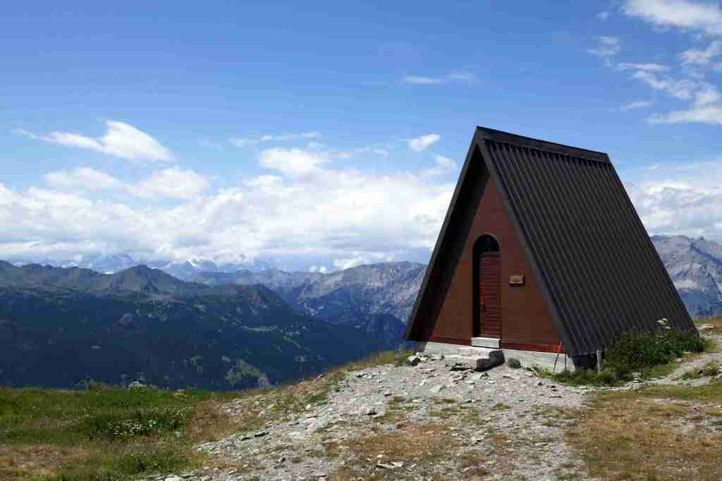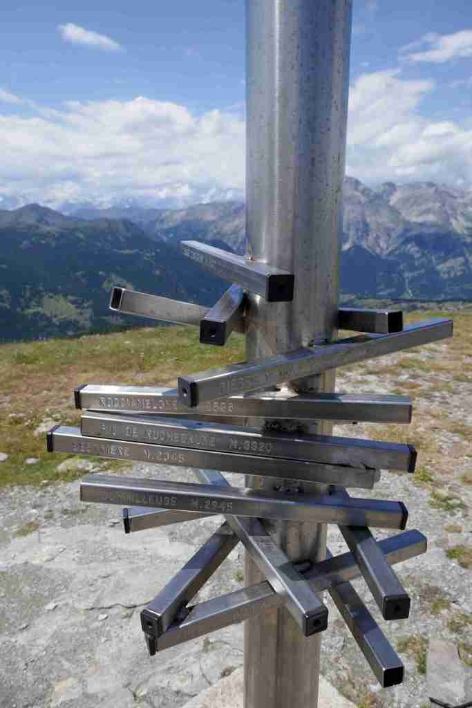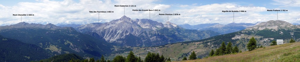 Au fur et à mesure que l’on monte, la vue se dégage sur le Mont Chaberton lorsque l’on se retourne. La fin de la randonnée se fait à découvert. Au sommet, trône une chapelle et une « table d’orientation » moderne formée de longues vues toutes installées en direction des sommets alentours. Le belvédère embrasse, au nord, de nombreux sommets du Piémont occidental. Au sud, tout près, le Monte Furgon (2815 m) et en arrière-plan la Punta Muta (3171 m) dominent les lieux. Enfin, à l’ouest, côté français, la vue s’ouvre sur le Queyras mais surtout sur les Ecrins, distants d’une trentaine de kilomètres.
