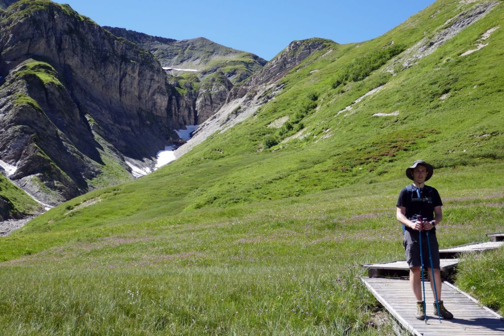 Des névés y persistent une grande partie de l’année. On arrive ensuite sur le magnifique secteur de la Sausse, sorte de cirque encadré par différents cols : le Bonhomme au nord, la Croix du Bonhomme à l’est et la Sauce au sud. Direction plein sud pour atteindre le dernier nommé (bien prendre à droite de la bergerie). D’ici, la vue s’ouvre vers le sud et quelques beaux sommets (aiguille du Grand Fond). Puis on se dirige vers le Rocher du Vent, dernière très belle étape de ce circuit, avec ses névés, sa via ferrata et ses belvédères sur les lacs de Roselend et de la Gittaz. La fin s’apparente à une (très) longue descente jusqu’au col de Sur Frêtes dans un premier temps, puis finalement jusqu’à la Gittaz.