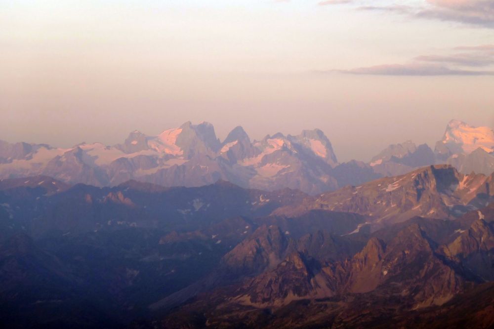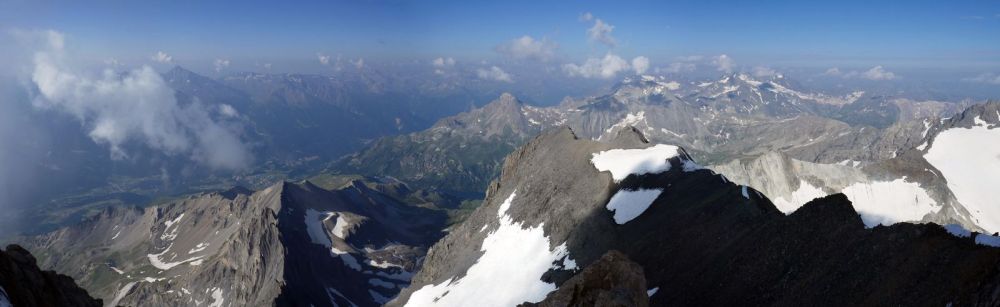 Du sommet, la vue embrasse une grande partie des Alpes. La Barre des Ecrins, située à une soixantaine de kilomètres à vol d’oiseau au sud-ouest, est par exemple visible.