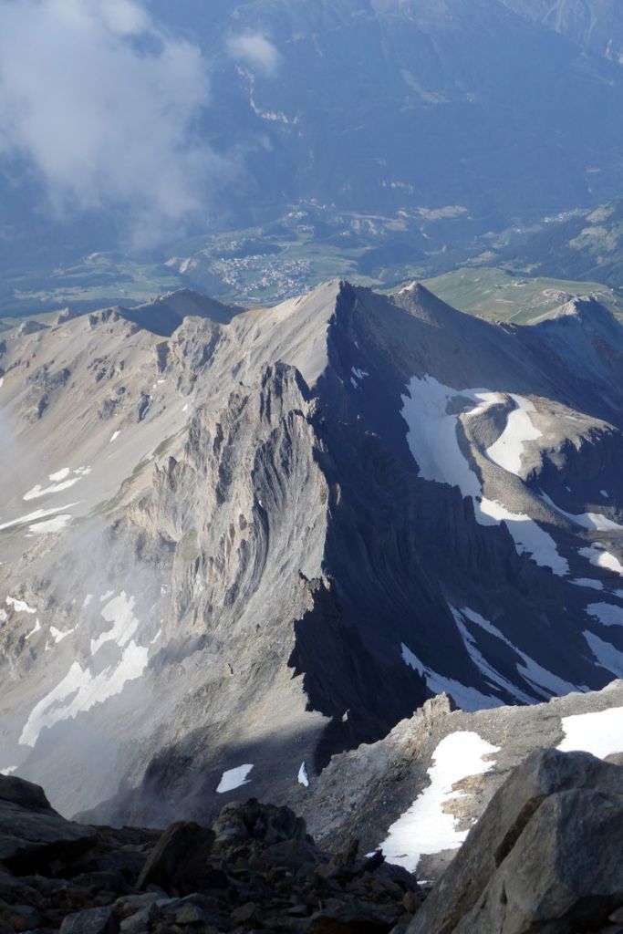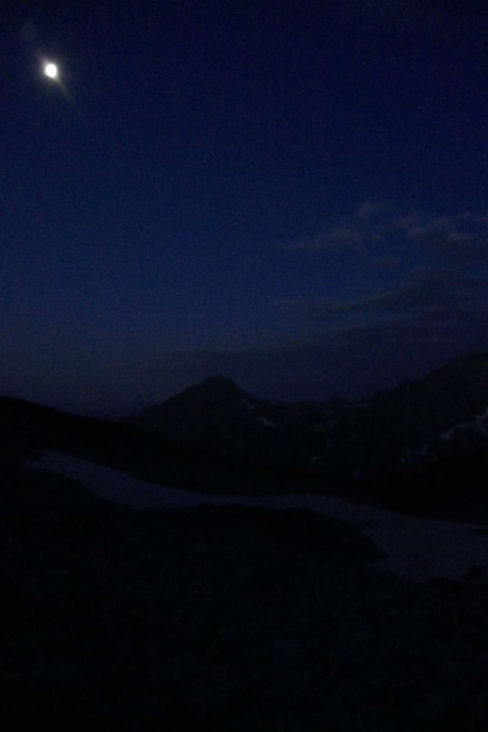 Départ à la frontale avant l’aube. Terrain très technique, montée dans des pierriers et dans des éboulis dont certains présentent de forts dénivelés.
