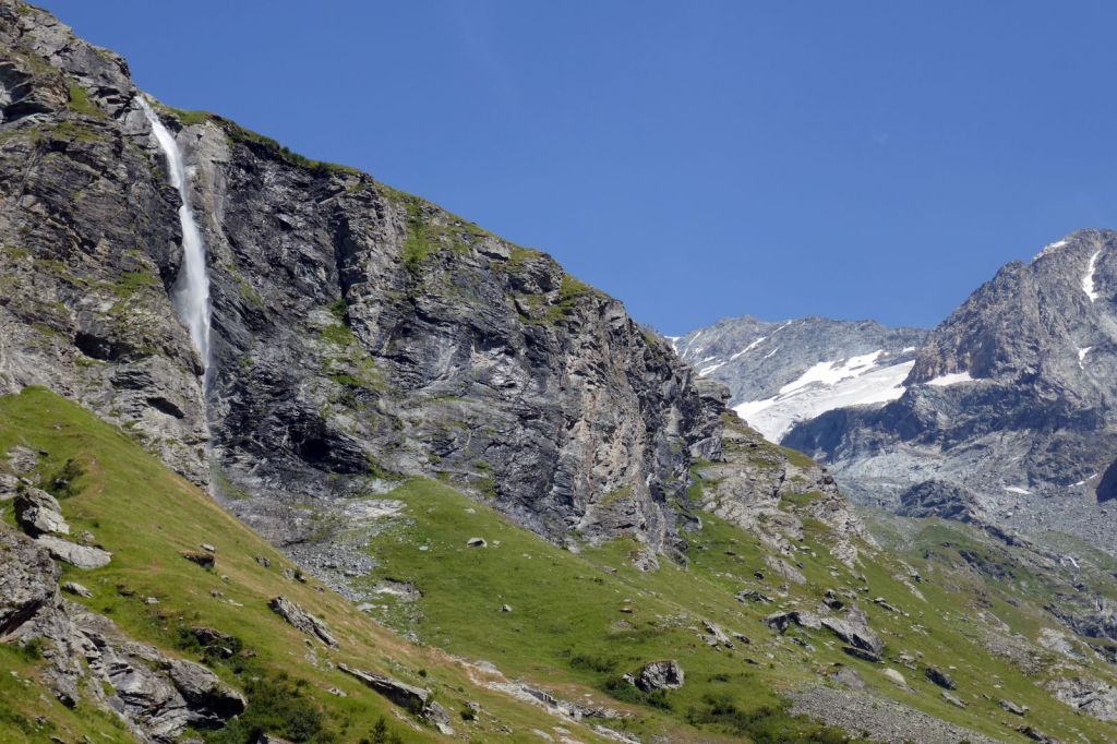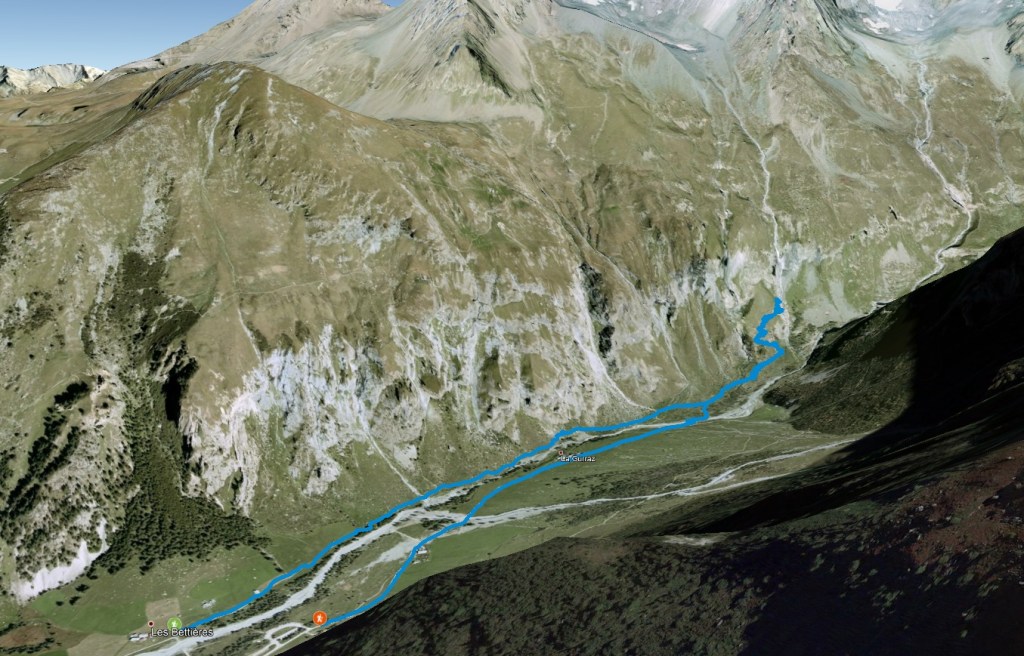 On progresse en ayant vraiment l’impression d’être tout au bout de la vallée, avec en ligne de mire le dôme de la Sache et ses glaciers.