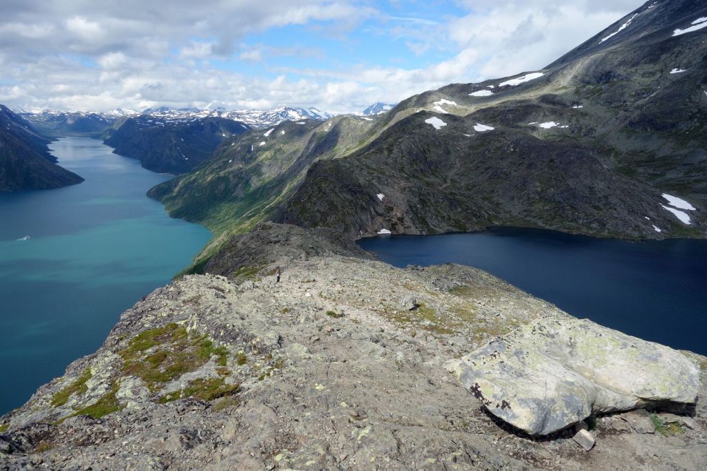 L’objectif principal de ce parcours réside dans la vue extraordinaire sur les lacs Bessvatnet et Gjende, au sommet de cette crête. Respectivement d’un bleu profond et turquoise, une différence d’altitude d’environ 500 mètres sépare ces deux lacs. Attention toutefois, cette randonnée s’adresse à des marcheurs expérimentés (6 à 8 heures de marche, dénivelé de plus de 1000 mètres). D’autant plus que la crête est exposée au vent et est escarpée.