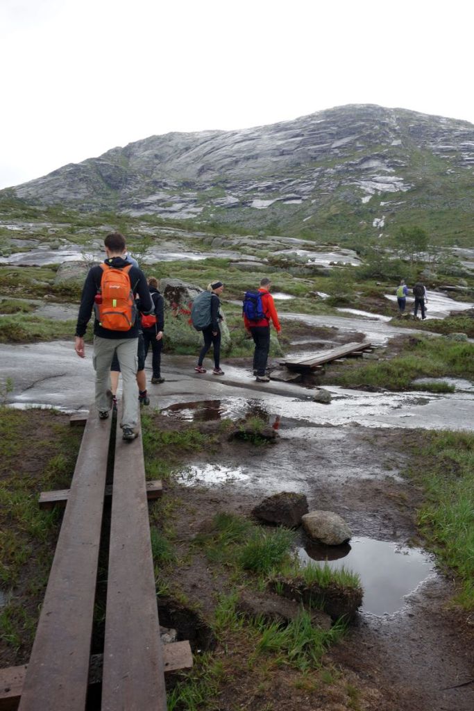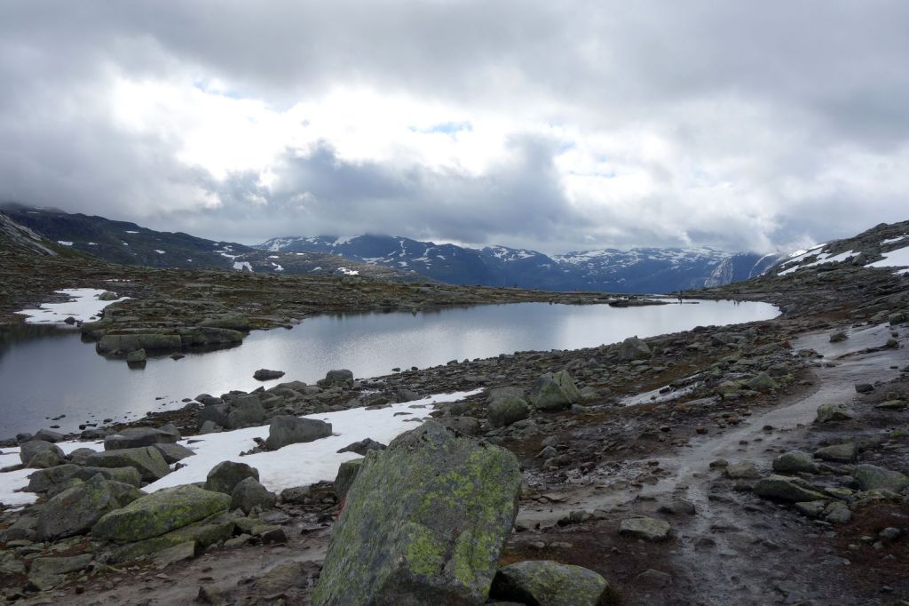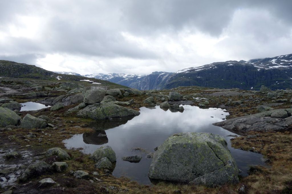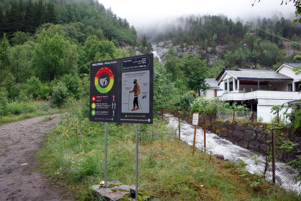 Néanmoins, la fameuse Langue du Troll ne s’offre pas à n’importe qui : il faut s’acquitter d’une longue marche de 22 km A/R avec un gros raidillon d’emblée, dans un terrain souvent très humide, pour espérer apercevoir cette pointe rocheuse en équilibre précaire.