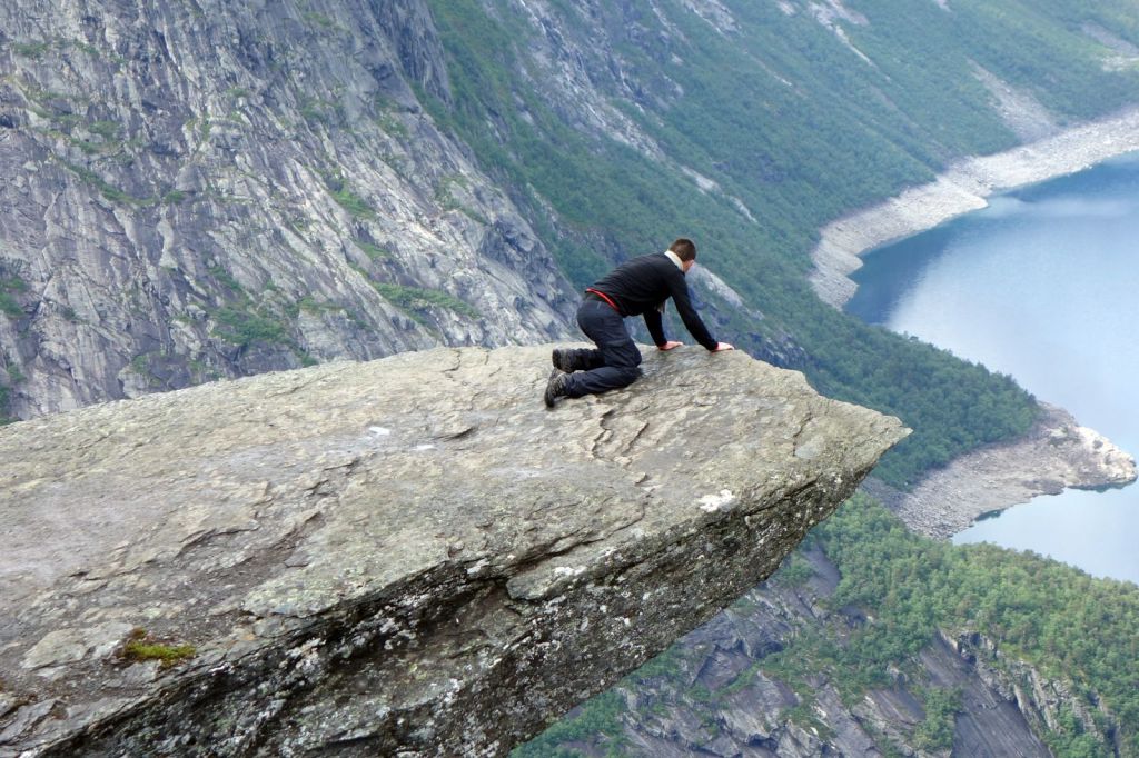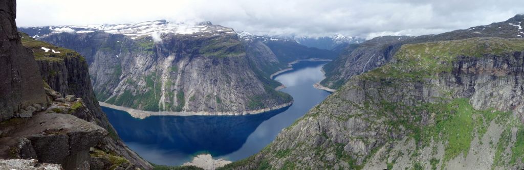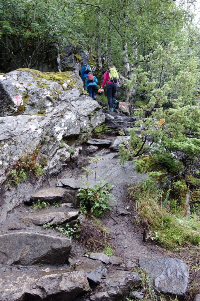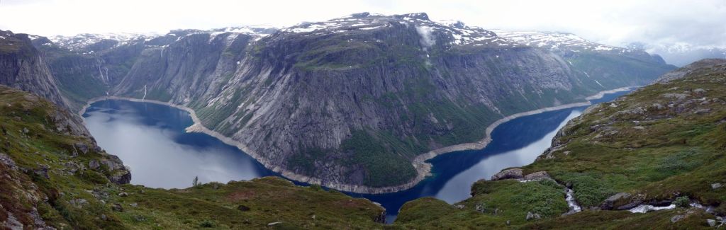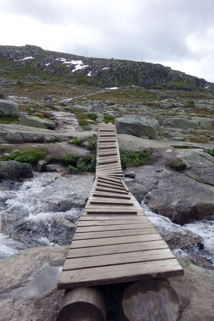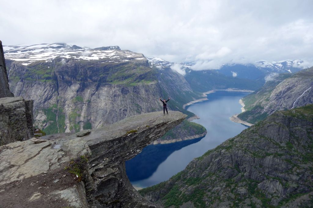 Néanmoins, la fameuse Langue du Troll ne s’offre pas à n’importe qui : il faut s’acquitter d’une longue marche de 22 km A/R avec un gros raidillon d’emblée, dans un terrain souvent très humide, pour espérer apercevoir cette pointe rocheuse en équilibre précaire.