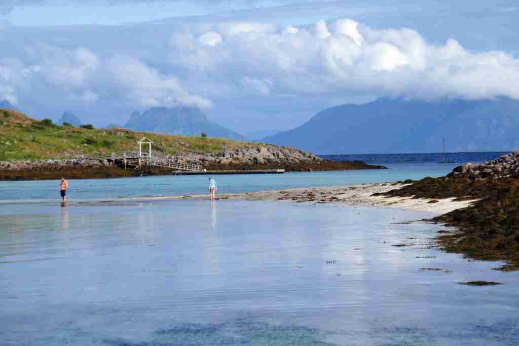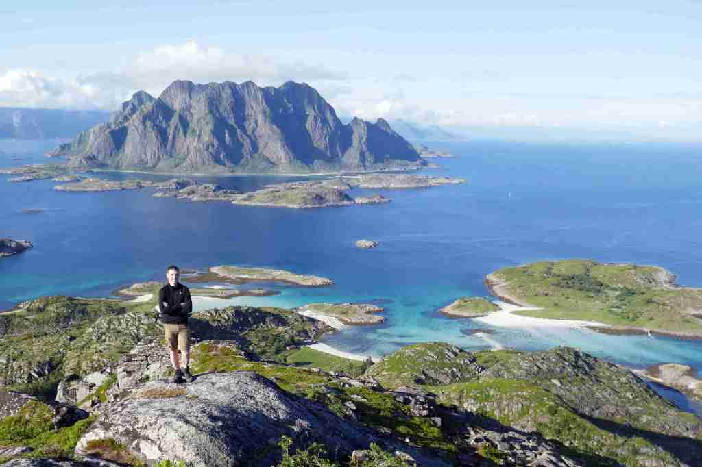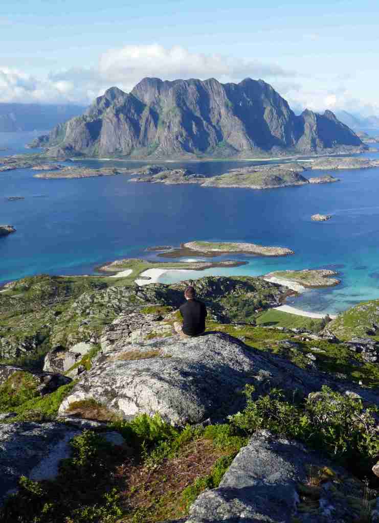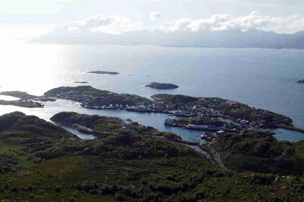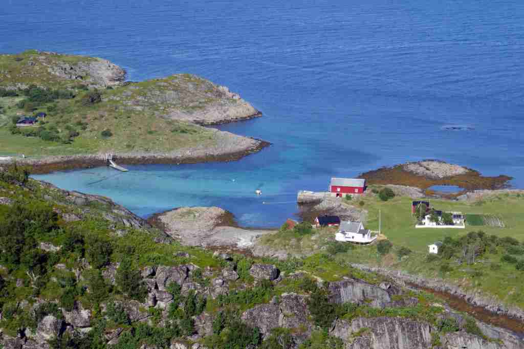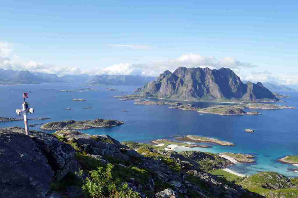 Le départ de cette randonnée se fait sur le port de Skrova, accessible en ferry depuis Svolvær. Direction la plage de Socks, située à une demi-heure (2 km) à l’extrémité est de l’île. Une pause s’impose pour admirer ce merveilleux endroit, observer le plongeon des sternes dans la mer et pourquoi pas tenter une baignade (très) rafraîchissante. Il s’agit ensuite de revenir sur ses pas sur environ 300-400 mètres, puis bifurquer sur un petit sentier moins marqué qui part vers le sud et atteint Skrovafjellet, littéralement « la montagne de Skrova ». D’ici, malgré la modeste altitude (258 m), le belvédère est extraordinaire, notamment vers le nord-est, où les petites criques paradisiaques occupent le premier plan, dominées par l’imposante et très photogénique île de Litlmolla en arrière-plan. Le retour au port passe tout d’abord au pied d’une grande antenne située juste au sud du sommet, avant de prendre la direction de l’ouest puis du nord.Type : randonnée