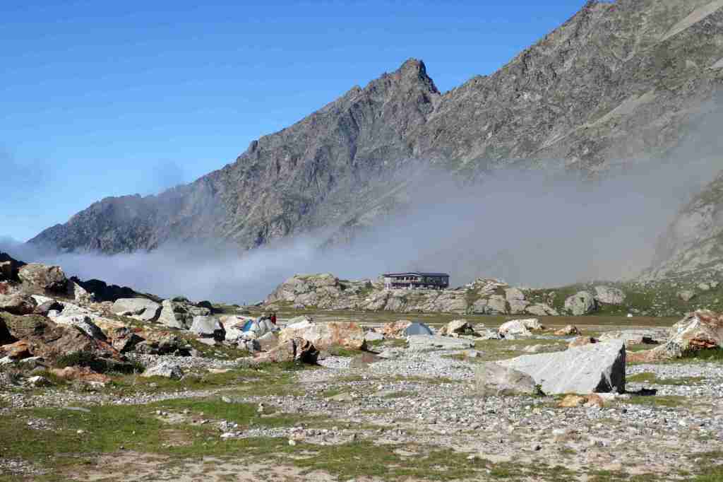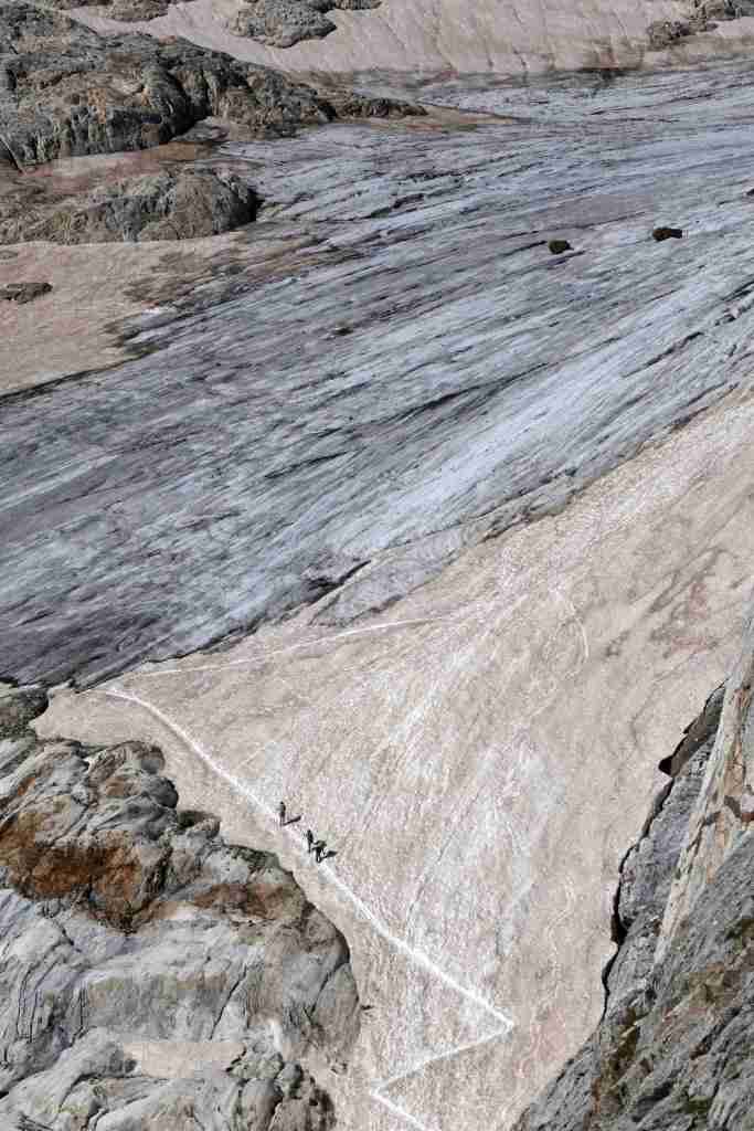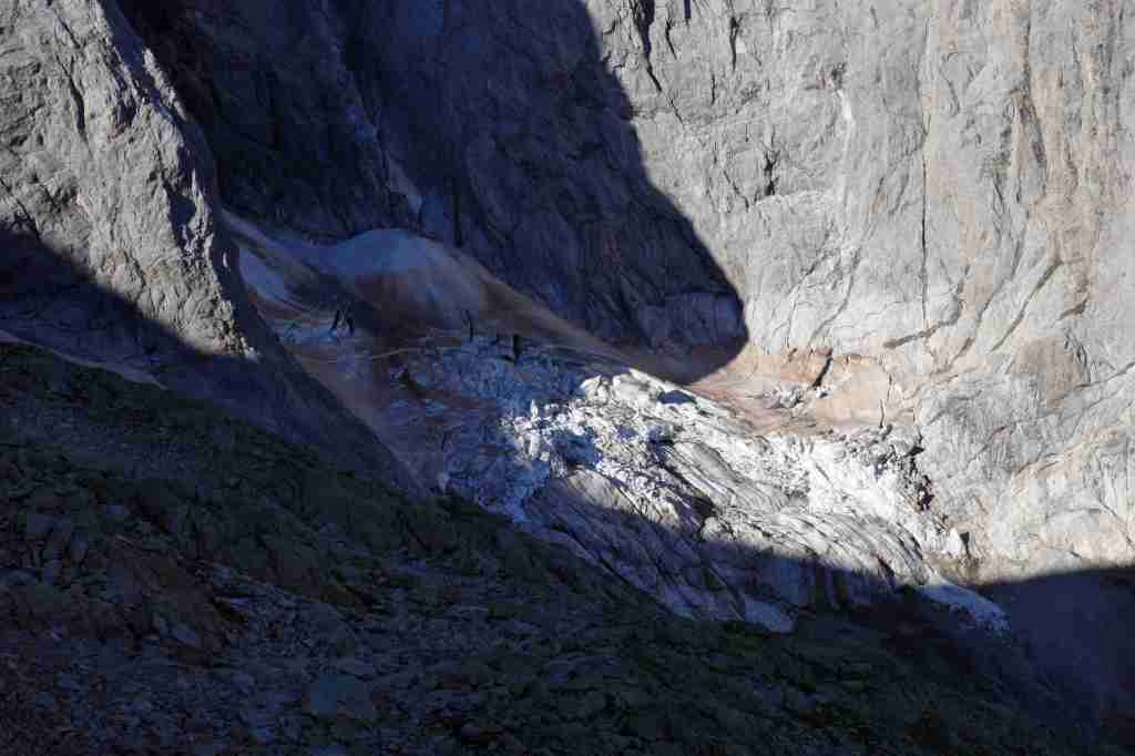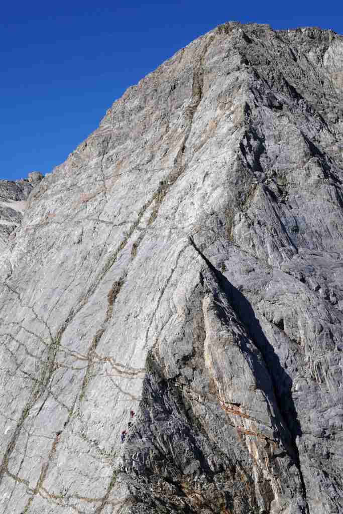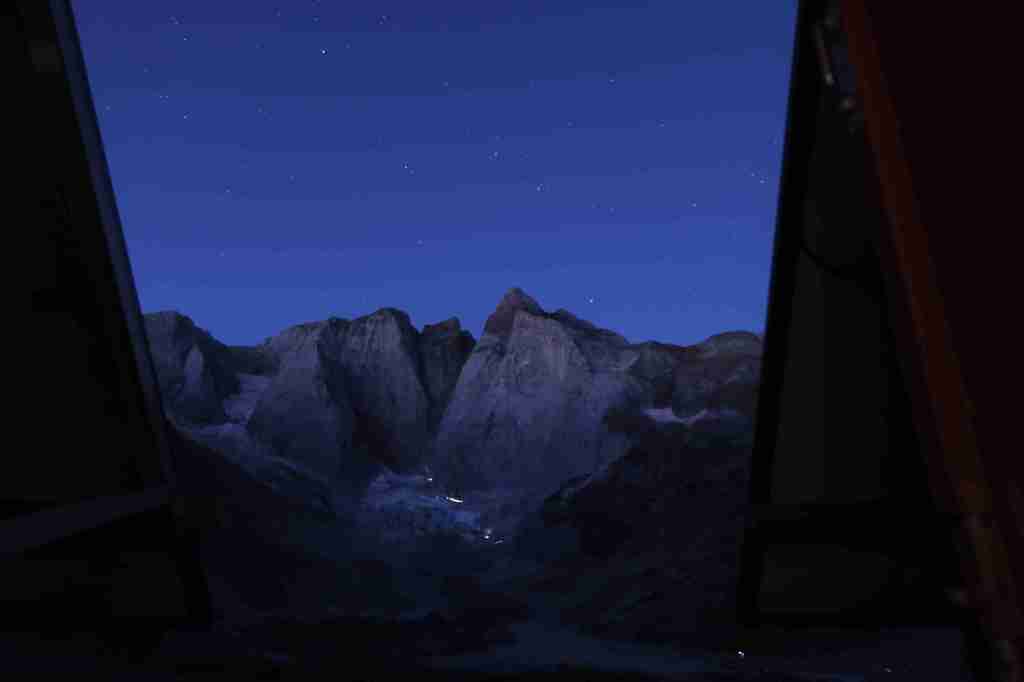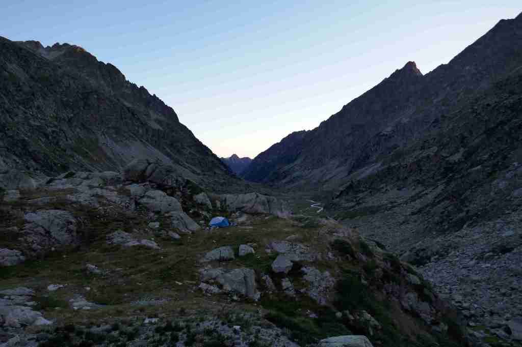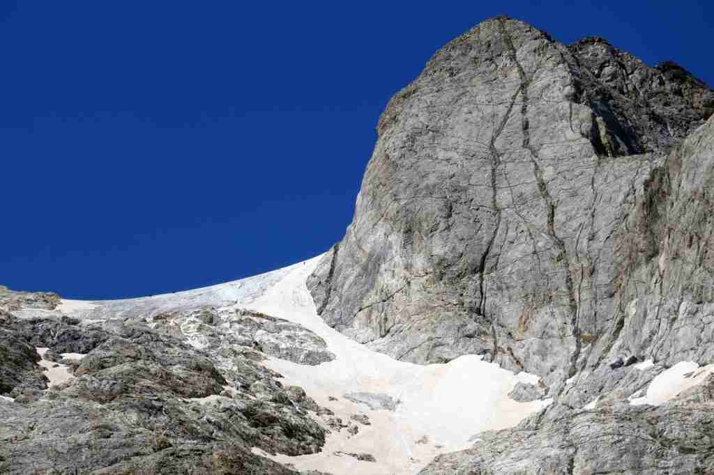 D’ici, on aperçoit le prochain col, celui des Mulets, en contrebas de la Pique Longue du Vignemale, point culminant des Pyrénées françaises. Pour l’atteindre, il nous faut traverser un petit morceau d’Espagne, le « Circo del Ara ». La fin de cette première étape s’apparente à une longue descente jusqu’au refuge des Oulettes de Gaube, lové au pied de la fameuse face nord. Extraordinaire.