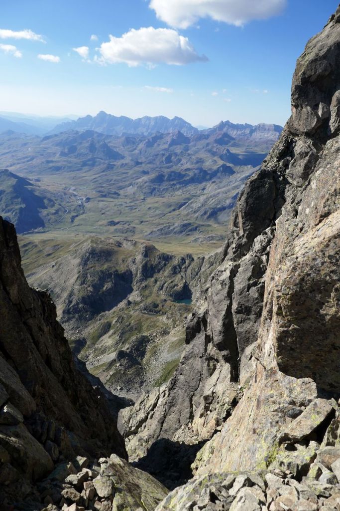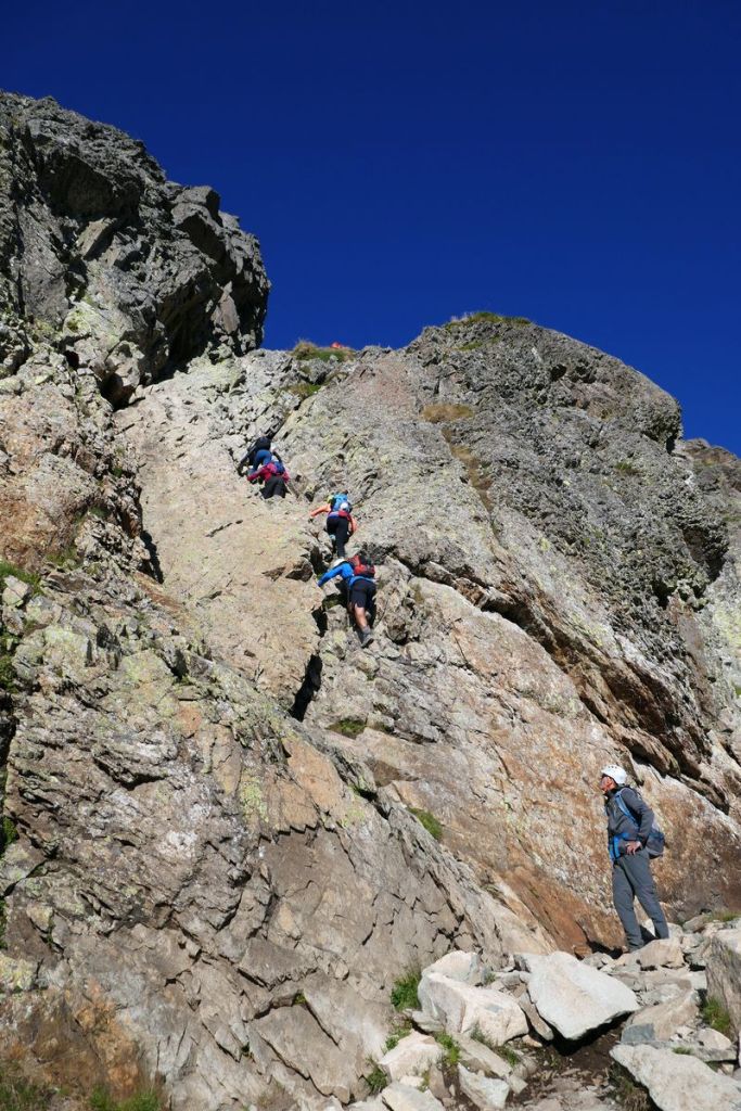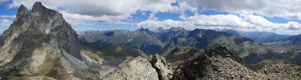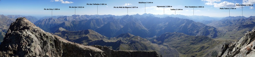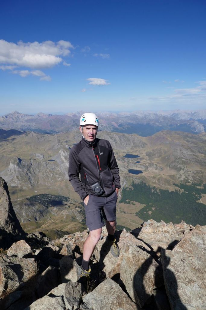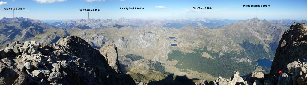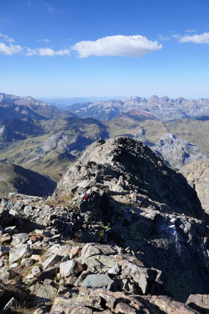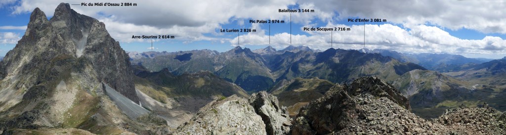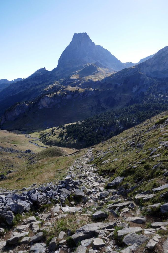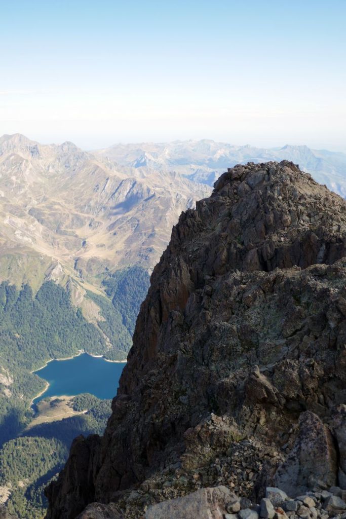 On progresse tout d’abord sur une arête très exposée en cas de vent. Puis les choses se corsent : une première cheminée assez technique se dresse face à nous. Casque obligatoire, baudriers, descendeurs et mousquetons conseillés (pour la descente). Une deuxième puis une troisième cheminée constituent les principales difficultés de cette montée. Au sommet, le belvédère est admirable et très vaste. L’isolement du Pic couplé au fait qu’il soit entouré de sommets nettement plus modestes offrent une impression très aérienne. La suite et fin de cette troisième étape correspond à une longue mais peu technique descente jusqu’au lac de Bious-Artigues.Indice IBP : 142 (niveau 5 = difficile)