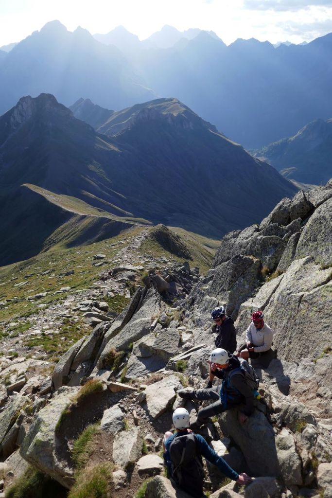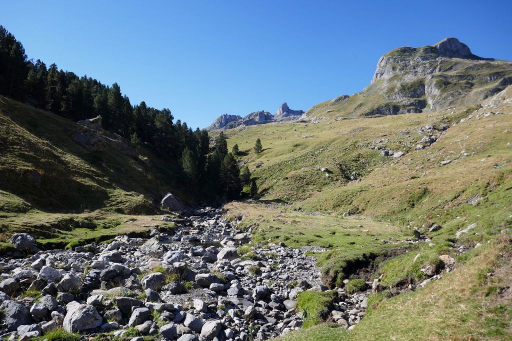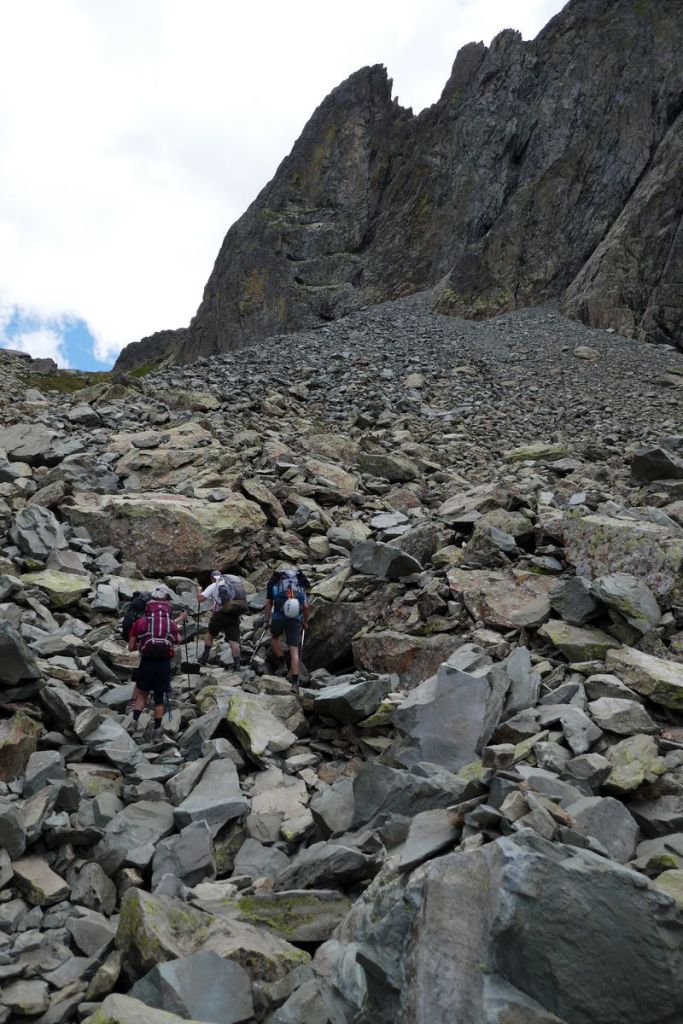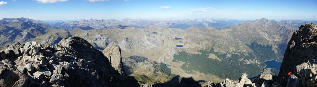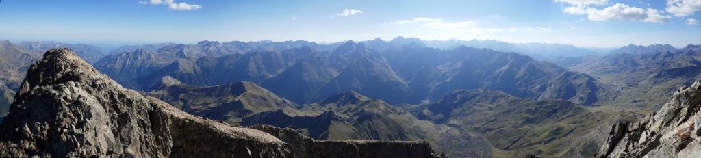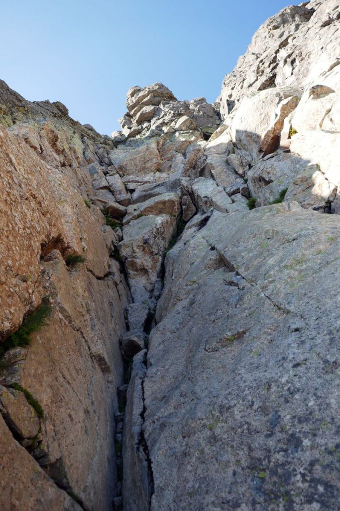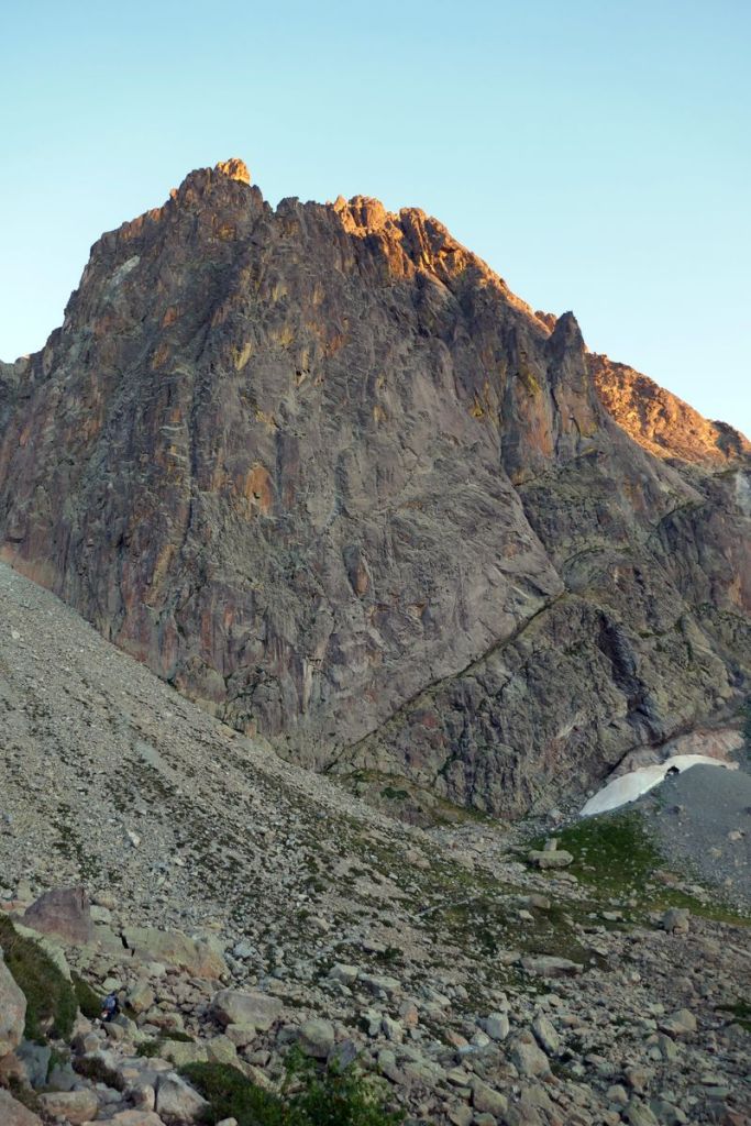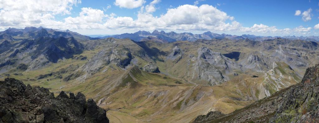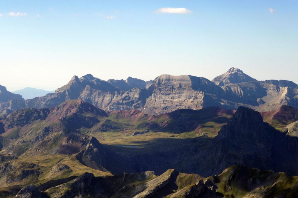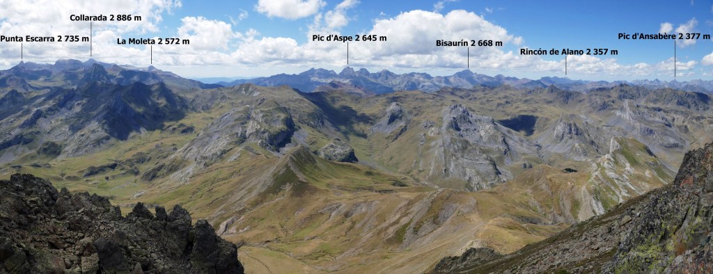 On progresse tout d’abord sur une arête très exposée en cas de vent. Puis les choses se corsent : une première cheminée assez technique se dresse face à nous. Casque obligatoire, baudriers, descendeurs et mousquetons conseillés (pour la descente). Une deuxième puis une troisième cheminée constituent les principales difficultés de cette montée. Au sommet, le belvédère est admirable et très vaste. L’isolement du Pic couplé au fait qu’il soit entouré de sommets nettement plus modestes offrent une impression très aérienne. La suite et fin de cette troisième étape correspond à une longue mais peu technique descente jusqu’au lac de Bious-Artigues.Indice IBP : 142 (niveau 5 = difficile)