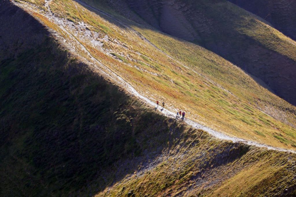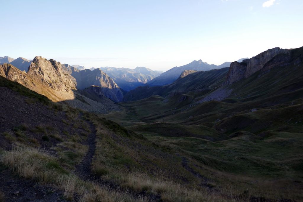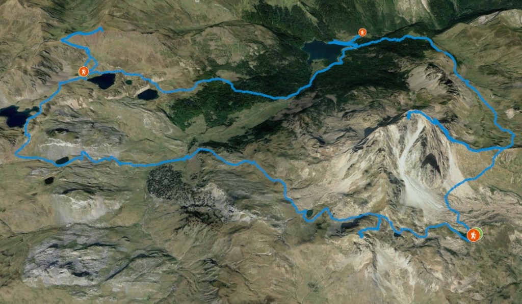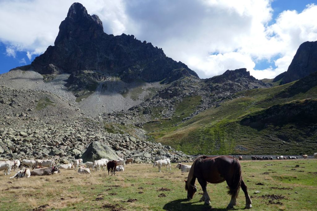 La descente continue jusqu’à la cabane de Cap de Pount. Puis c’est le début d’un gros raidillon menant jusqu’aux abords de la cabane de Peyreget. Puis la pente s’adoucit jusqu’au lac de Peyreget, où les chevaux côtoient les vaches. Le dénivelé s’intensifie à nouveau jusqu’au col de Peyreget. D’ici, un petit aller-retour au Pic Peyreget (2487 mètres) s’impose, moyennant un rab de 200 mètres de dénivelé. La fin du parcours s’apparente à une descente tranquille vers le lac et le refuge de Pombie, dominés par l’imposante silhouette de l’Ossau.Indice IBP : 128 (niveau 5 = difficile)